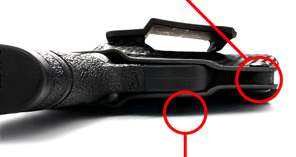 Our Kydex holsters are backed with a sweat guard to minimize the contact between your gun and your body, keeping your slide clean and sweat-free.
